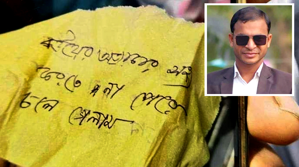 ‘বউয়ের অত্যাচার সহ্য করতে না পেরে চলে গেলাম’ চিরকুট লিখে গলায় ফাঁস দিয়ে নজরুল ইসলাম নামে এক স্কুলশিক্ষক আত্মহত্যা করেছেন। গতকাল শনিবার (৭ সেপ্টেম্বর) বরগুনার আমতলী উপজেলার হরিদ্রাবাড়িয়া গ্রামে এ