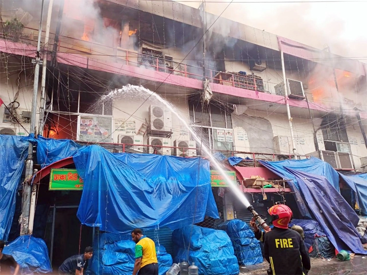 বঙ্গবাজারে আগুন, নিয়ন্ত্রণে কাজ করছে ফায়ার সার্ভিসের ৫০ ইউনিট